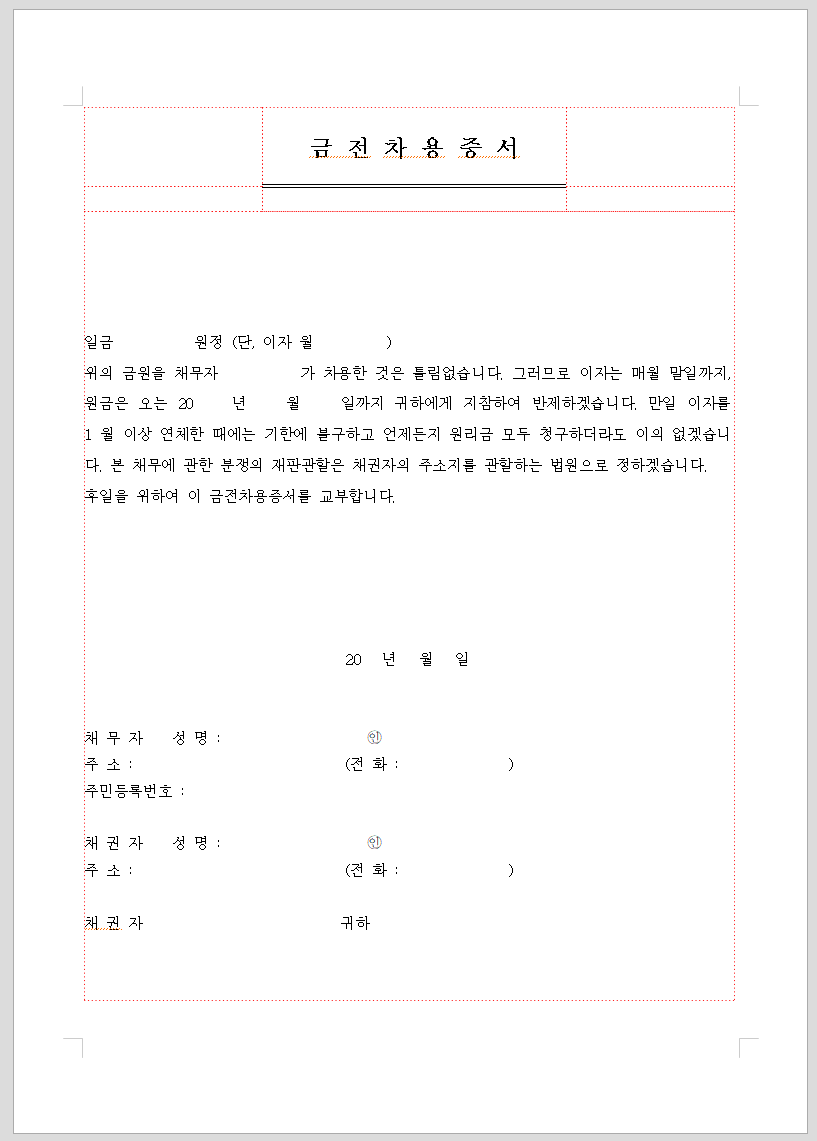 금전차용증 양식 다운로드